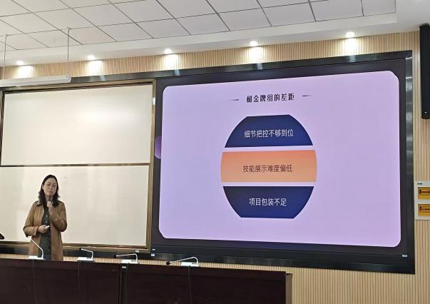 在商贸赛道分享环节,铜奖获奖代表王淑怡详细讲述备赛过程。她提到,团队成员始终主动担当,面对难题主动冲锋、集思广益,形成了积极互助的良好备赛氛围。指导教师窦炜博则以闭幕式专家点评为切入点,深入剖析参赛中的重点得分环节,同步提供极具参考价值的参赛策略,引发在场师生的深度思考。