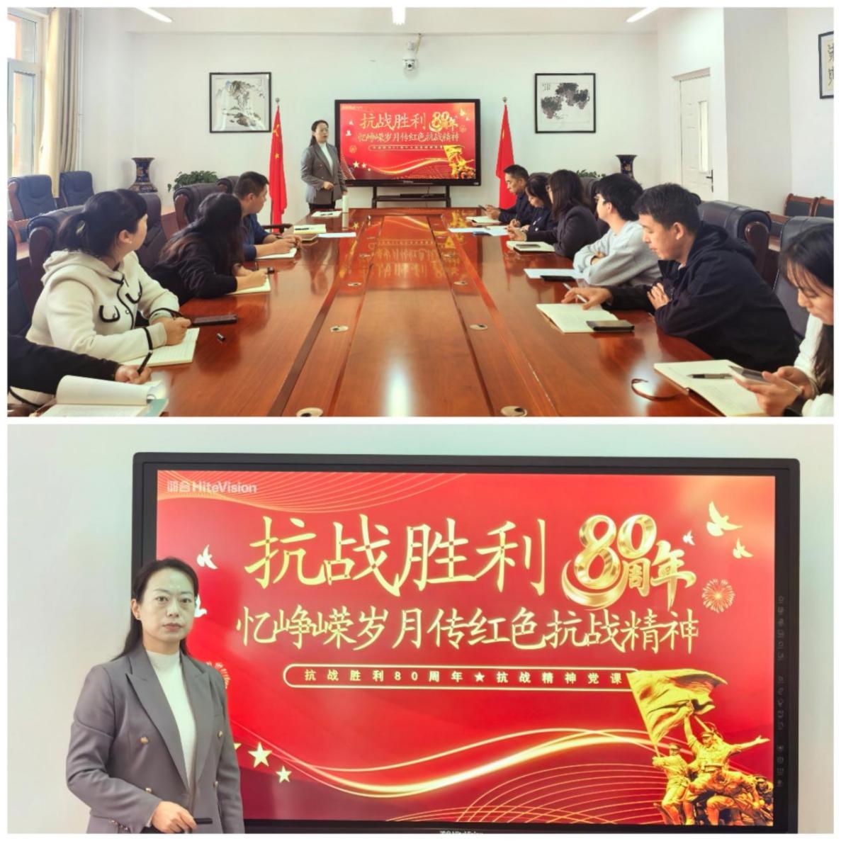 活动伊始,高凌燕同志以“峥嵘岁月传红色抗战精神”为题,为全体党员讲授专题党课。从平型关大捷打破“日军不可战胜”的神话,到百团大战提振全国军民抗战信心;从东北抗联将士在零下四十度的严寒中浴血奋战,到滇西战场军民同心死守怒江防线——一个个浸染牺牲与坚守的战例,一段段饱含热血与信仰的往事,引领党员们沉浸式体悟“天下兴亡、匹夫有责”的爱国情怀,“视死如归、宁死不屈”的民族气节,以及“不畏强暴、血战到底”的英雄气概。