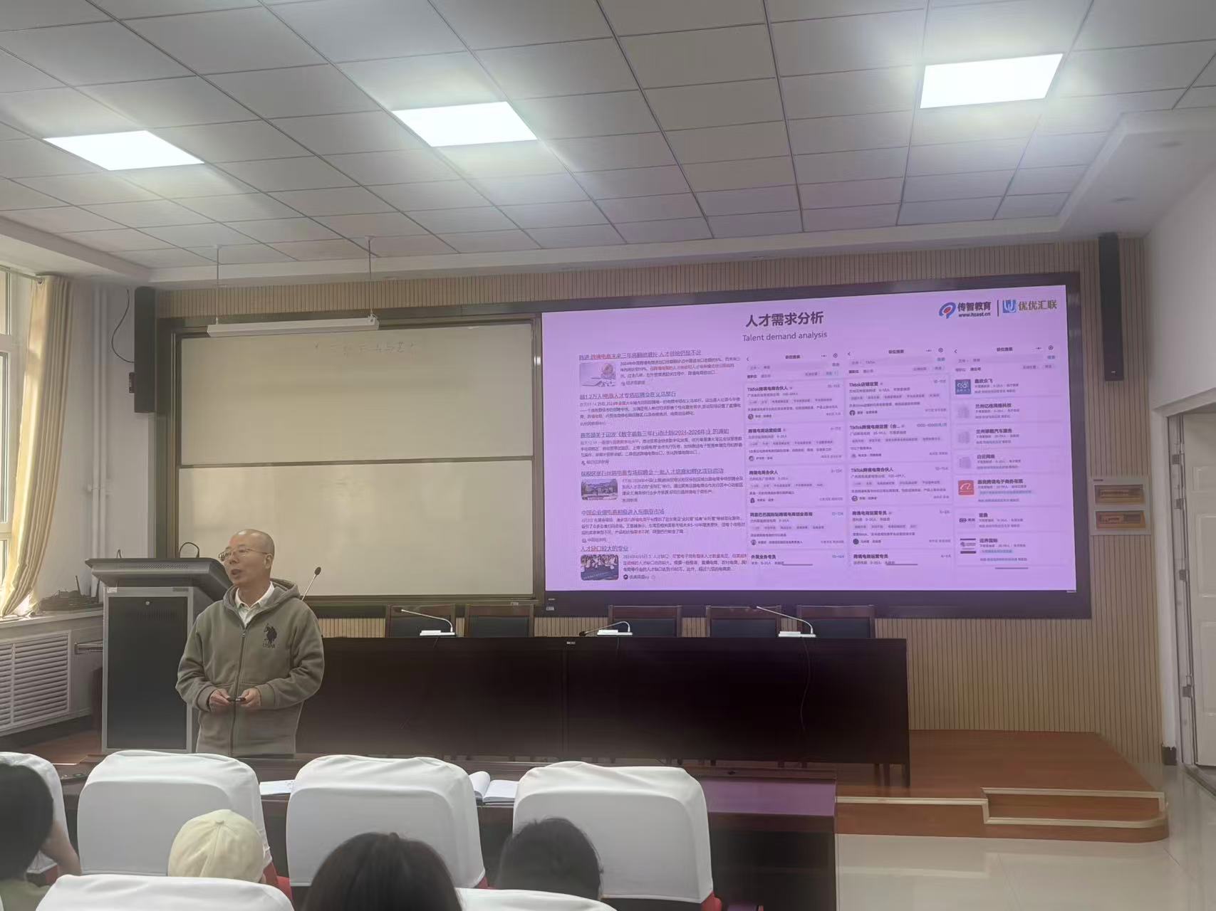 讲座中,杨亮发老师首先聚焦跨境电商行业发展脉络,深入剖析了当前行业的前沿趋势与核心机遇。他指出,伴随全球数字化浪潮的加速推进,跨境电商已成为驱动国际贸易增长的“新引擎”,行业规模的持续扩张也催生了对具备实战能力的专业人才的迫切需求。结合“产教融合”的核心理念,杨老师进一步从学校人才培养目标、学生职业发展规划、教师教学实践优化、企业用人需求匹配四个维度,系统讲解了跨境电商领域的复合型人才培养方案,为师生清晰勾勒出“学”与“用”的衔接路径。