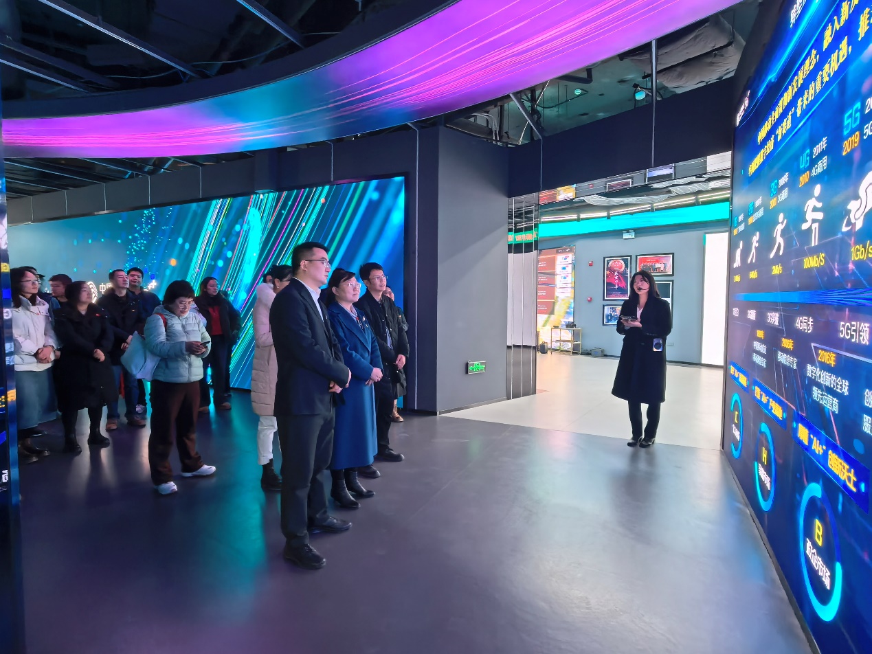 活动当日,校企双方党员代表齐聚中国移动甘肃公司5G联合创新中心,共同参观5G联合创新中心展厅。党员们近距离观摩5G技术在智慧教育、工业互联网等领域的前沿应用成果,直观感受数字技术为行业发展带来的变革性力量,进一步拓宽了对“5G+教育”融合发展的认知视野。