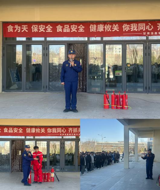 演练开始前,兰州新区西岔消防救援站消防安全负责人结合烹饪实训室火灾特点,围绕火灾预防、火场逃生要点、灭火器及灭火毯规范操作等内容进行集中讲解,重点示范“提、拔、握、压”灭火步骤,应急疏散流程等知识,通过现场示范、要点讲解,让师生熟练掌握实训场景下的消防实操技能。