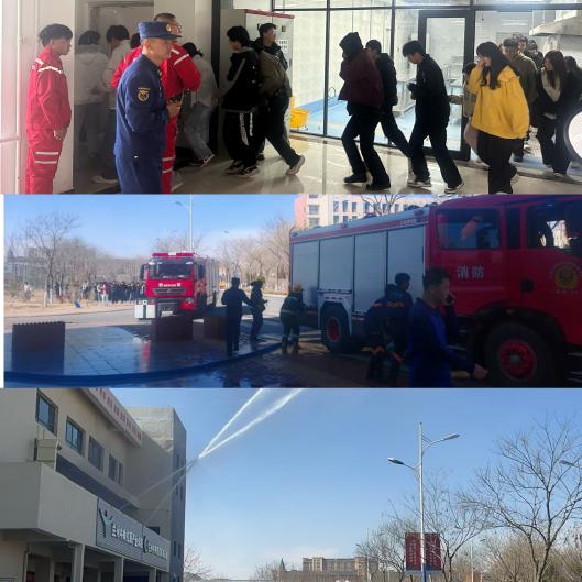 演练过程中,现场释放烟雾弹模拟油锅起火、电器短路等突发火情,警报响起后,全体师生严格按照演练方案,用手捂住口鼻,低姿弯腰、快速有序地沿预定路线撤离至实训室外安全集合点,全程秩序井然、高效规范。随后,消防专业人员现场进行了初期火情灭火扑救全流程的模拟演练,整个演练紧张有序、贴近实战,达到了预期效果。