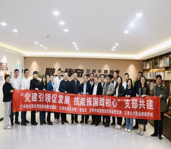 为深入学习贯彻党的二十大及二十届历次全会精神,落实习近平总书记关于职业教育的重要论述,搭建“政、校、培、企、工”五方协同的校企联建平台,推动我院党建工作与技能人才培养、高水平专业群建设及就业创业服务深度融合,2026年4月10日下午,财经商贸学院党总支以第二党支部为主体联合兰州市就业创业促进会党支部、甘肃合力职业培训学校,在“陇上传奇”兰州牛肉拉面技能人才培养基地开展了“党建引领促发展 技能报国践初心”主题党日支部联建活动。“常小平技能大师工作室”成员与学院工会代表共同参与。
